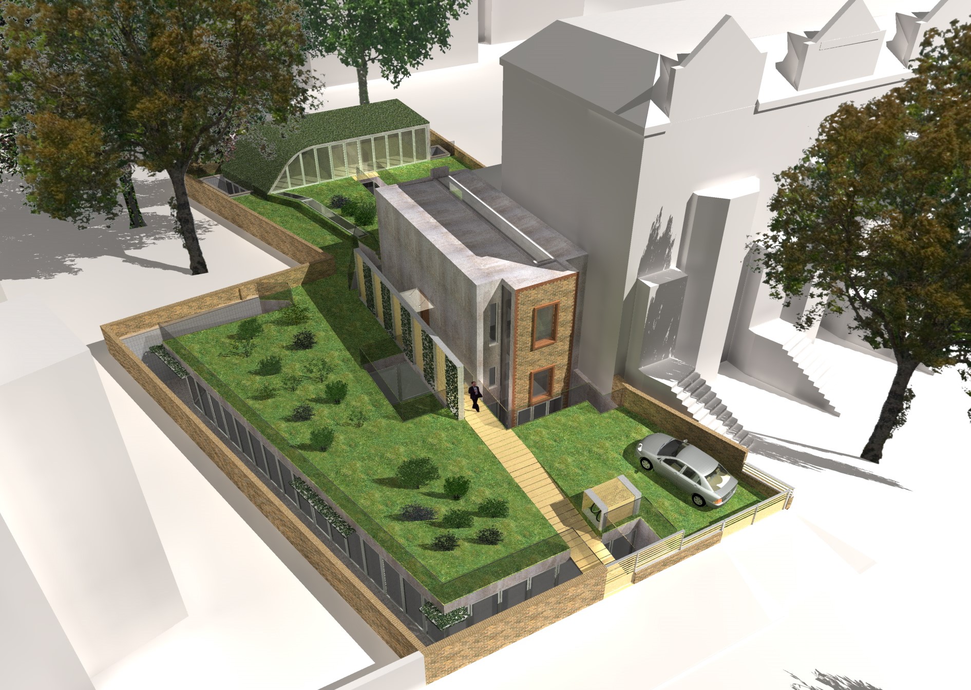 AS Studio secured challenging planning consent for a 7,000 sq.ft mostly underground house by preparing detailed drawings, high-quality CGIs, and extensive negotiations with the local authority. The plot was later sold with the approved consent.